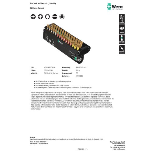 Wera Bit-Check 30 Diamond 1, 30-teilig