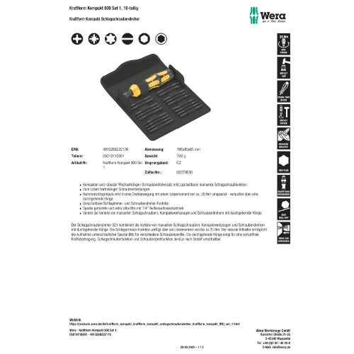 Eigenschaften "Wera Kraftform Kompakt 900 Set 1, 19-teilig"