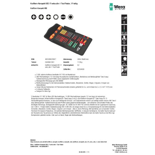 Produktinformationen "Wera Kraftform Kompakt VDE 17 extra slim 1 Tool Finder, 17-teilig"