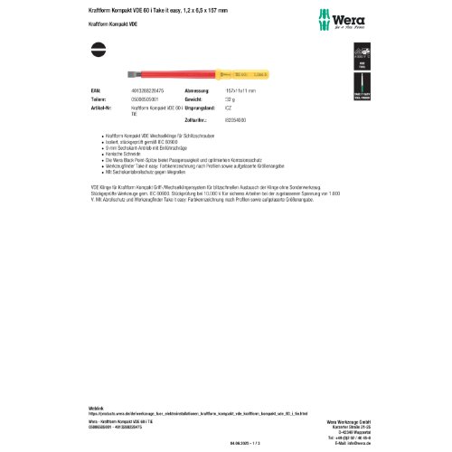 3080d55b8b2a41f5ba606a8709b9a618Wera Kraftform Kompakt VDE 60 i Take it easyhttps://shop.heesundpeters.com/Wera-Kraftform-Kompakt-VDE-60-i-Take-it-easy/Var539598https://shop.heesundpeters.com/media/4b/51/69/1756227009/kraftform_kompakt_vde_60_i_tie__1_2_x_6_5_x_157.jpg?ts=1756227009InStock0.01EURf27c2cc22ad64559befe009a1f70a726Wera Kraftform Kompakt VDE 60 i Take it easy SB, 0,6 x 3,5 x 157 mm0.010https://shop.heesundpeters.com/Wera-Kraftform-Kompakt-VDE-60-i-Take-it-easy-SB-0-6-x-3-5-x-157-mm/539642https://shop.heesundpeters.com/media/25/0e/d1/1756227156/kraftform_kompakt_vde_60_i_0_6_x_3_5_x_157_tie_sb.jpg?ts=1756310693OutOfStock539642f27c2cc22ad64559befe009a1f70a726Wera Kraftform Kompakt VDE 60 i Take it easy SB, 0,6 x 3,5 x 157 mmstückgeprüftes-Werkzeug, insulated-VDE-blades, Take-it-easy-tool-finder, individually-tested-tools, Schlitzschrauben, Wera, Take-it-easy-Werkzeugfinder, isolierte-VDE-Wechselklinge, slotted-screws, 4013288229007, Kraftform Kompakt VDE 60 i Take it easy SB, 0,6 x 3,5 x 157 mm, 05006552001, 539642JaNeingeradeSechskant (hexagonal)NeinNeinJarundJaUN mmNA mmNeinNA mmNANA230.00 mmNeinsonstigeNeinNeinbrüniertSchraubendreherNeinsonstigeNANein157 mm3.5 mm0.6 mm05006552001401328822900733.00 g050065520014013288229007{"extensions":[],"displayParent":true,"mainVariantId":null,"configuratorGroupConfig":[{"id":"0194975e548a7009a3dc957279ea3874","representation":"box","expressionForListings":false}],"displayCheapestVariant":null,"displayMainVariant":null}truetrue05006552001, 4013288229007, 539642, individually-tested-tools, insulated-VDE-blades, isolierte-VDE-Wechselklinge, Kraftform Kompakt VDE 60 i Take it easy SB, 0,6 x 3,5 x 157 mm, Schlitzschrauben, slotted-screws, stückgeprüftes-Werkzeug, Take-it-easy-tool-finder, Take-it-easy-Werkzeugfinder, Wera8cbfa44ddf7f42ac9c42984afddc11f5Wera Kraftform Kompakt VDE 60 i Take it easy SB, 0,4 x 2,5 x 157 mm0.010https://shop.heesundpeters.com/Wera-Kraftform-Kompakt-VDE-60-i-Take-it-easy-SB-0-4-x-2-5-x-157-mm/539640https://shop.heesundpeters.com/media/0b/02/5b/1756227155/kraftform_kompakt_vde_60_i_0_4_x_2_5_x_157_tie_sb.jpg?ts=1756310693OutOfStock5396408cbfa44ddf7f42ac9c42984afddc11f5Wera Kraftform Kompakt VDE 60 i Take it easy SB, 0,4 x 2,5 x 157 mmstückgeprüftes-Werkzeug, insulated-VDE-blades, Take-it-easy-tool-finder, individually-tested-tools, Schlitzschrauben, Wera, Take-it-easy-Werkzeugfinder, isolierte-VDE-Wechselklinge, slotted-screws, Kraftform Kompakt VDE 60 i Take it easy SB, 0,4 x 2,5 x 157 mm, 05006550001, 539640, 4013288228925JaNeingeradeSechskant (hexagonal)NeinNeinJarundJaUN mmNA mmNeinNA mmNANA230.00 mmNeinsonstigeNeinNeinbrüniertSchraubendreherNeinsonstigeNANein157 mm0.4 mm2.5 mm05006550001401328822892531.00 g050065500014013288228925{"extensions":[],"displayParent":true,"mainVariantId":null,"configuratorGroupConfig":[{"id":"0194975e548a7009a3dc957279ea3874","representation":"box","expressionForListings":false}],"displayCheapestVariant":null,"displayMainVariant":null}truetrue05006550001, 4013288228925, 539640, individually-tested-tools, insulated-VDE-blades, isolierte-VDE-Wechselklinge, Kraftform Kompakt VDE 60 i Take it easy SB, 0,4 x 2,5 x 157 mm, Schlitzschrauben, slotted-screws, stückgeprüftes-Werkzeug, Take-it-easy-tool-finder, Take-it-easy-Werkzeugfinder, Weradc24e5bbae624a07b04901787488911eWera Kraftform Kompakt VDE 60 i Take it easy SB, 1 x 5,5 x 157 mm0.010https://shop.heesundpeters.com/Wera-Kraftform-Kompakt-VDE-60-i-Take-it-easy-SB-1-x-5-5-x-157-mm/539644https://shop.heesundpeters.com/media/be/5e/77/1756227163/kraftform_kompakt_vde_60_i_1_0_x_5_5_x_157_tie_sb.jpg?ts=1756227164OutOfStock539644dc24e5bbae624a07b04901787488911eWera Kraftform Kompakt VDE 60 i Take it easy SB, 1 x 5,5 x 157 mmstückgeprüftes-Werkzeug, insulated-VDE-blades, Take-it-easy-tool-finder, individually-tested-tools, Schlitzschrauben, Wera, Take-it-easy-Werkzeugfinder, isolierte-VDE-Wechselklinge, slotted-screws, 4013288229021, Kraftform Kompakt VDE 60 i Take it easy SB, 1 x 5,5 x 157 mm, 05006554001, 539644JaNeingeradeSechskant (hexagonal)NeinNeinJarundJaUN mmNA mmNeinNA mmNANA230.00 mmNeinsonstigeNeinNeinbrüniertSchraubendreherNeinsonstigeNANein157 mm1.0 mm5.5 mm28.00 g401328822902105006554001050065540014013288229021{"extensions":[],"displayParent":true,"mainVariantId":null,"configuratorGroupConfig":[{"id":"0194975e548a7009a3dc957279ea3874","representation":"box","expressionForListings":false}],"displayCheapestVariant":null,"displayMainVariant":null}truetrue05006554001, 4013288229021, 539644, individually-tested-tools, insulated-VDE-blades, isolierte-VDE-Wechselklinge, Kraftform Kompakt VDE 60 i Take it easy SB, 1 x 5,5 x 157 mm, Schlitzschrauben, slotted-screws, stückgeprüftes-Werkzeug, Take-it-easy-tool-finder, Take-it-easy-Werkzeugfinder, Weraec1dbbb4c2c840e6a549972601a574afWera Kraftform Kompakt VDE 60 i Take it easy, 1,2 x 6,5 x 157 mm0.010https://shop.heesundpeters.com/Wera-Kraftform-Kompakt-VDE-60-i-Take-it-easy-1-2-x-6-5-x-157-mm/539598https://shop.heesundpeters.com/media/4b/51/69/1756227009/kraftform_kompakt_vde_60_i_tie__1_2_x_6_5_x_157.jpg?ts=1756227009OutOfStock539598ec1dbbb4c2c840e6a549972601a574afWera Kraftform Kompakt VDE 60 i Take it easy, 1,2 x 6,5 x 157 mmstückgeprüftes-Werkzeug, Take-it-easy-tool-finder, individually-tested-tools, Schlitzschrauben, Wera, Take-it-easy-Werkzeugfinder, isolierte-VDE-Wechselklinge, slotted-screws, insulated-VDE-blade, 4013288228475, 05006505001, Kraftform Kompakt VDE 60 i Take it easy, 1,2 x 6,5 x 157 mm, 539598JaNeingeradeSechskant (hexagonal)NeinNeinJarundJaUN mmNA mmNeinNA mmNANANeinsonstigeNeinNeinbrüniertSchraubendreherNeinsonstigeNANein157 mm32.00 g157.00 mm6.5 mm1.2 mm401328822847505006505001050065050014013288228475{"extensions":[],"displayParent":true,"mainVariantId":null,"configuratorGroupConfig":[{"id":"0194975e548a7009a3dc957279ea3874","representation":"box","expressionForListings":false}],"displayCheapestVariant":null,"displayMainVariant":null}truetrue050065