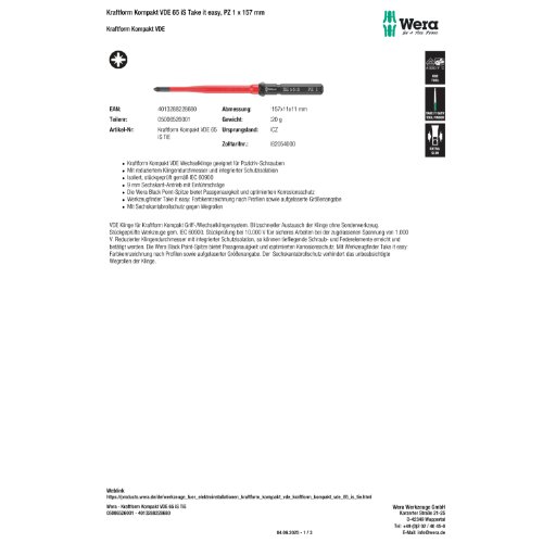 Produktinformationen "Wera Kraftform Kompakt VDE 65 iS Take it easy, PZ 1 x 157 mm"
