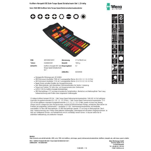 Eigenschaften "Wera Kraftform Kompakt VDE Safe-Torque Speed Schaltschrank-Set 1, 23-teilig"