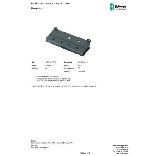 | Variante: | Wera Rack für Kraftform Schraubendreher, 190 x 50 mm |