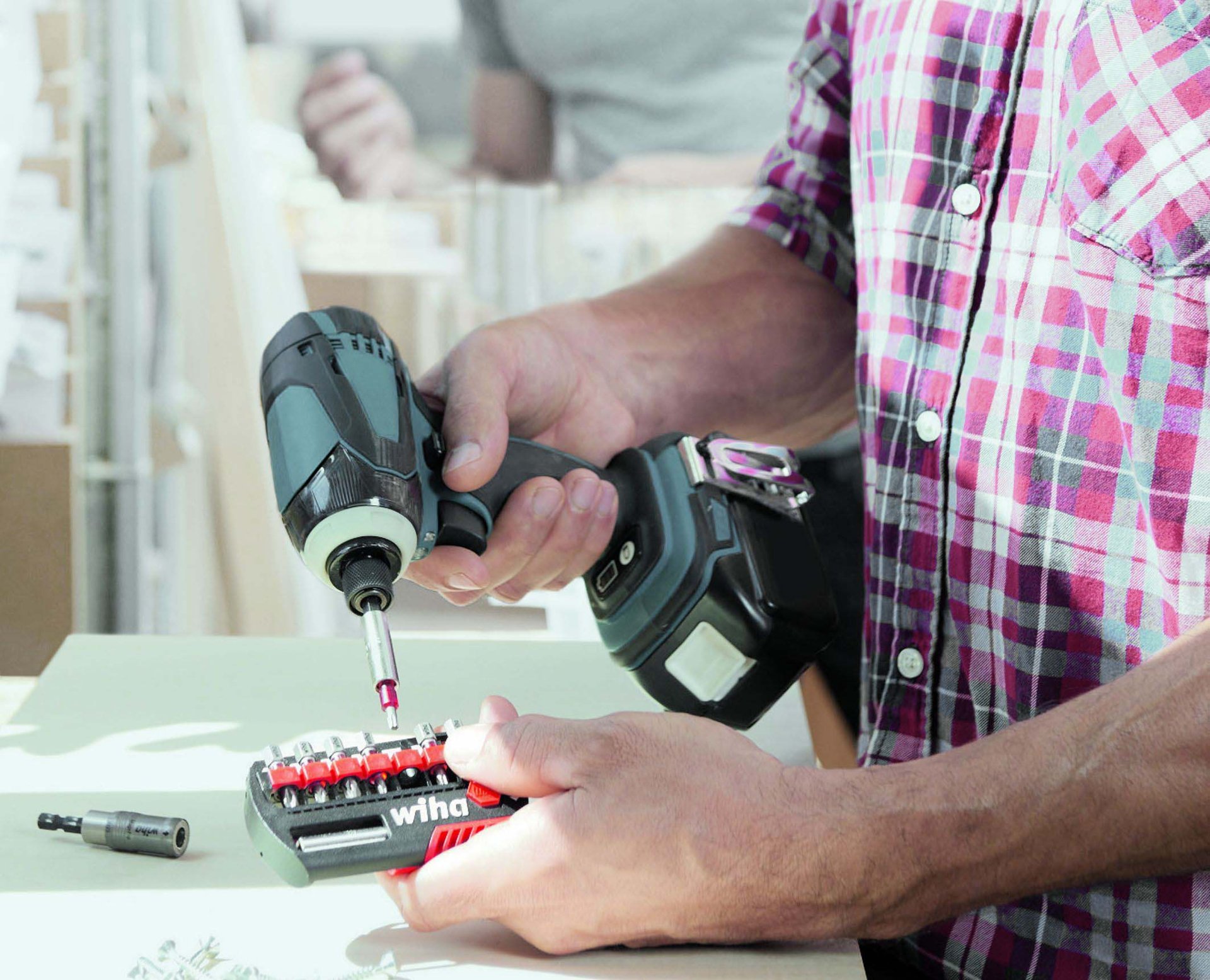 Steigert Ihre Effizienz: Der Generalist mit 120x höherer Lebensdauer* dank patentierter Bittechnologie, geeignet für alle Schrauben. (*im Vergleich zu Wiha Standardbit)Senkt Ihre Kosten: Bit dank roter Farbmarkierung schnell und einfach auffindbar – mit UV-Licht sogar in dunkler Umgebung.Spart Zeit: Automatische Öffnung auf Knopfdruck und einfacher Bitwechsel direkt im Halter.Spart Zeit: Kein langes Suchen dank leuchtend farbigem Bit, geringe Bitwechselzeit dank hoher Lebensdauer.Anwendung: Für alle Arten von Schrauben geeignet. Auch für Impact- und Schlagschrauber geeignet.Für Impact-Verschraubungen in Holz- und MetallEinhandbedienung - Einfache und schnelle Bitentnahme und ZurückführungPatentierte Bittechnologie für 120x höhere LebensdauerBei Dunkelheit gut auffindbar mit UV-LichtMit 7 Bits und BithalterKeine Hand frei und das lästige Suchen nach dem richtigen Bit satt? Der Wiha BitBuddy® ermöglicht die direkte Aufnahme der Bits mit dem Akkuschrauber sowie das einfache Zurückführen in den BitBuddy®. Der im Set enthaltene Bithalter mit starkem Magnet unterstützt die innovative Handhabung des Buddies mit nur einer Hand. Dank der neuartigen Anordnung der Bits in der Halterung sowie der gelaserten Profilgröße auf dem Bitboden wird die Auswahl der richtigen Größe bei der Bitentnahme zum Kinderspiel. Der enthaltene TY-Bit ist als Multitalent für alle Arten von Schrauben, sowohl für T-förmige Metallschrauben als auch Y-förmige Holzschrauben, geeignet und somit das ideale Werkzeug für Verschraubungen in allen Materialen. Dank der patentierten, verlängerten Torsionszone ist der Bit auch für Impact- und Schlagschrauber geeignet und garantiert eine 120x höhere Lebensdauer im Vergleich zu den Wiha Standardbits. Zudem sind die farbigen Bits schnell und einfach auffindbar und dank des Farbmantels auch im Dunkeln mit UV-Licht gut zu finden.