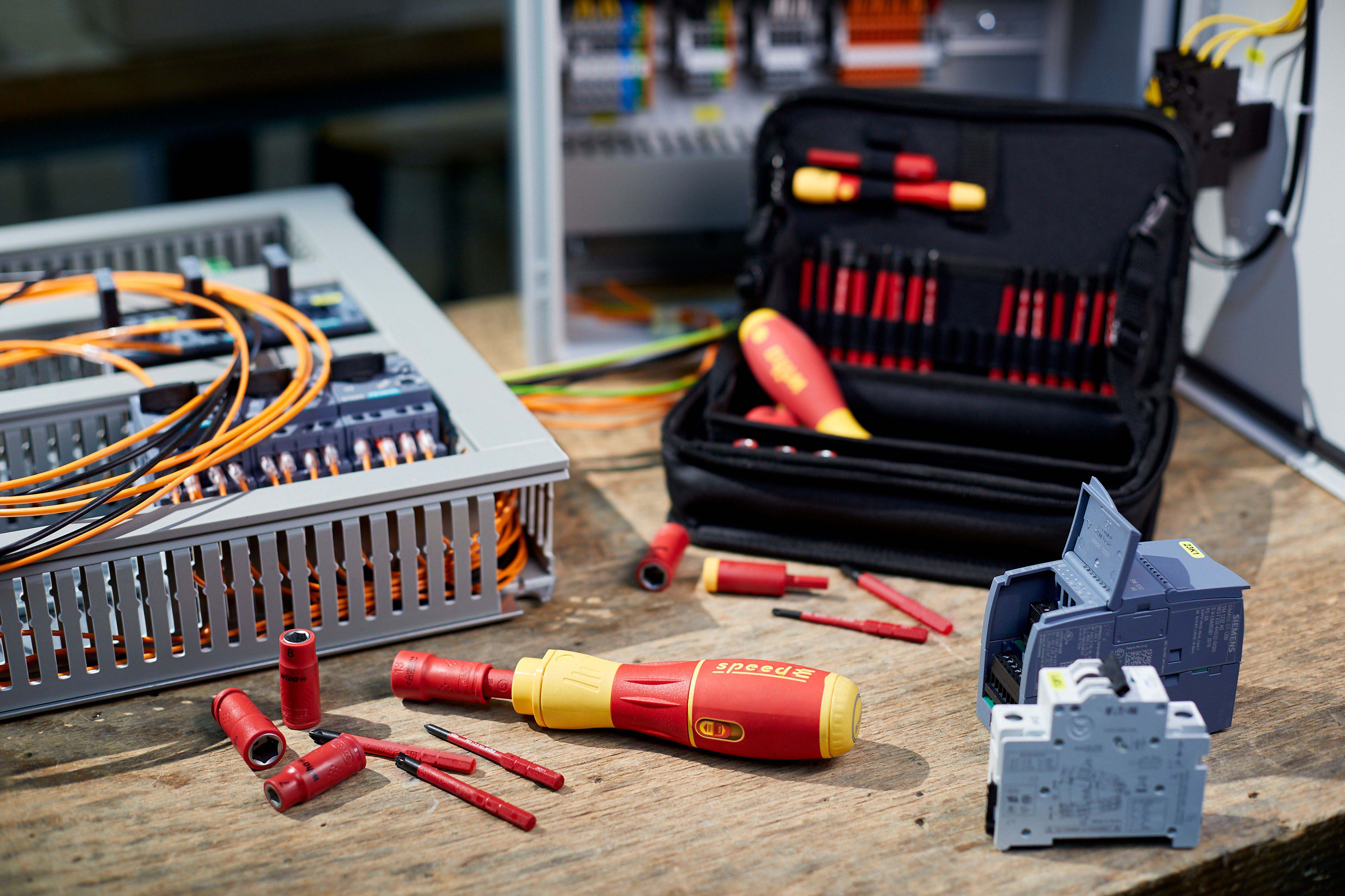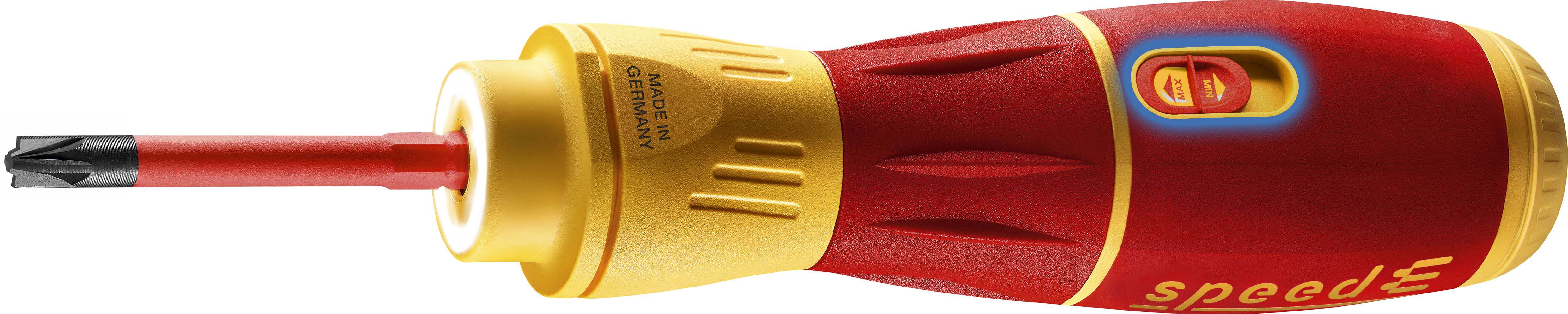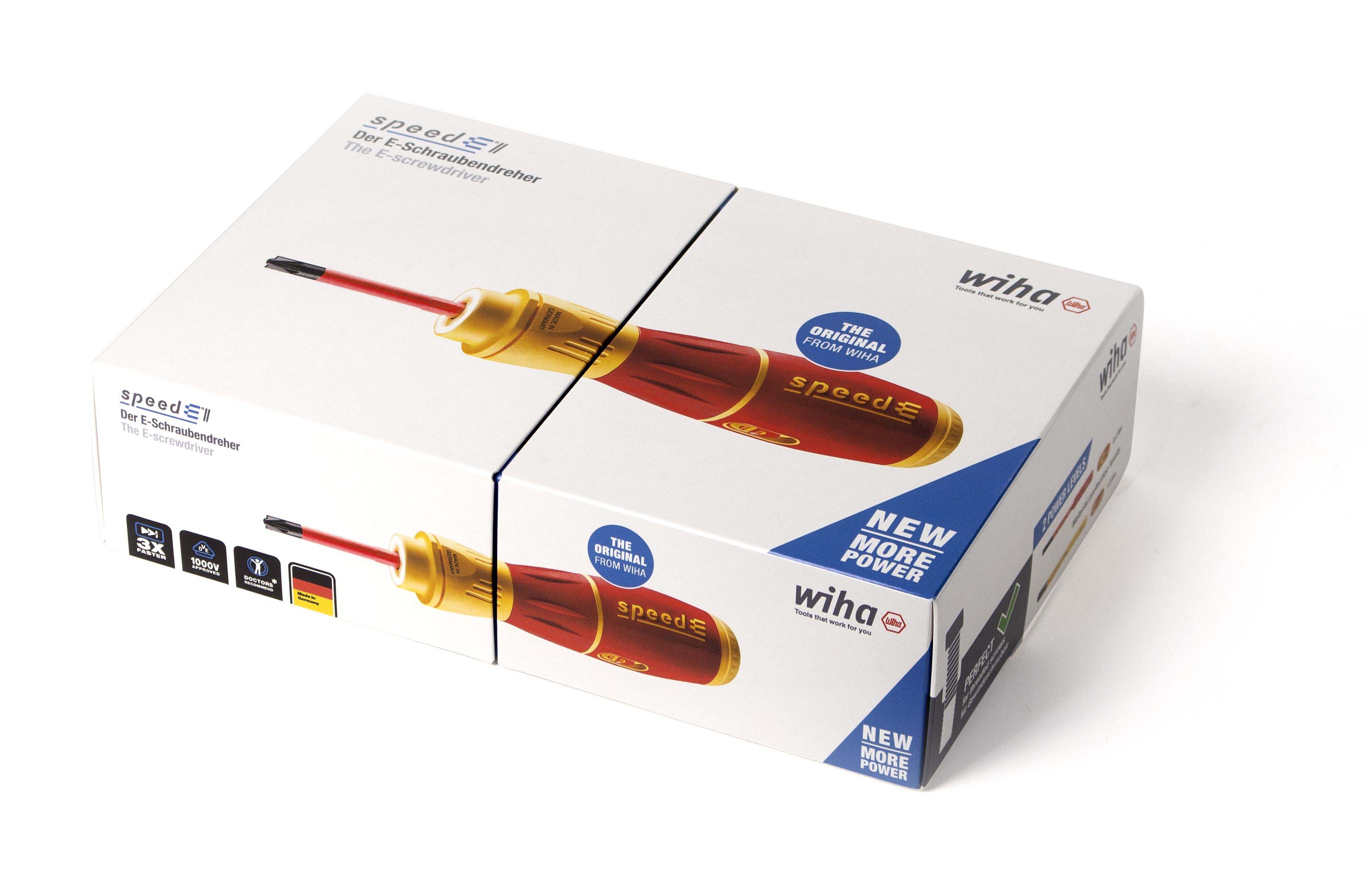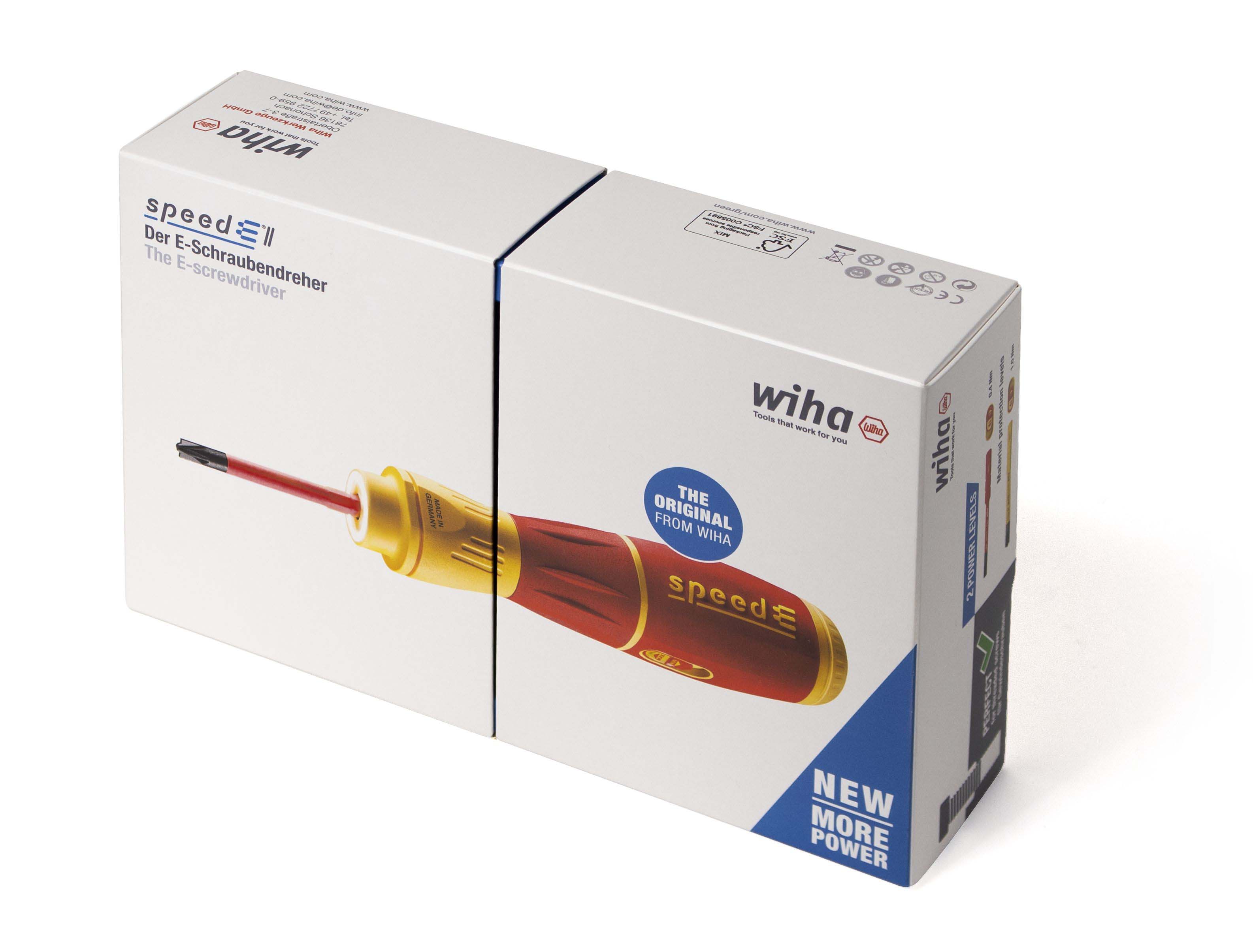 Steigert Ihre Geschwindigkeit: 3 x schnelleres Arbeiten dank elektrischem Antrieb.Schützt Ihr Material: Elektrisches Verschrauben mit Schutzfunktion zur Vermeidung von Materialbeschädigungen.Bietet Ihnen vollen Schutz: slimBits bei 10.000 V AC getestet und zugelassen für 1.000 V AC.Steigert Ihre Effizienz: 100% kompatibel mit der Wiha Electric Vario Family.Erleichtert die Handhabung: Einzigartiger Ringschalter ermöglicht die Bedienung in allen Arbeitspositionen.Vereinfacht Ihre Arbeit: Maximale Ausleuchtung des Arbeitsfeldes dank Ring-LED-Leuchte.Schont Ihre Gesundheit: Für hand- und muskelschonendes Arbeiten. Von deutschen Ärzten und Therapeuten des AGR empfohlen!Erfüllt Ihre Ansprüche: Qualität und Robustheit made in Germany.Anwendung: Ideales Werkzeug für alle Schraubarbeiten, z.B. Steckdosenmontage, Arbeiten im Schaltschrank, Industriewartung und -montage, Wartung und Reparatur von Motorgeräten, Haushaltsgeräte und weiße Ware, Fenster- und Türenmontage, Heizung-, Klima- und Sanitärinstallationen und Reparatur von Fahrrad, Motorrad und Rasenmäher. Auch im Haushalt für Möbelaufbauten, Reparaturen und sonstige Schraubaufgaben im Hobbybereich perfekt geeignet.3x schneller als von HandMaterialschutzfunktion dank Auto-StopBedienbar in allen Positionen dank RingschalterSchattenfreie BeleuchtungVon deutschen Ärzten und Therapeuten des AGR empfohlenslimBits ermöglichen Zugang zu tiefliegenden Schrauben dank eingelassener IsolierungEtliche Verschraubungen am Tag, hunderte Verschraubungen in der Woche. Als Handwerker investiert man viel Zeit und Energie in wiederkehrende Schraubarbeiten. Die daraus resultierenden Schmerzen in den Handgelenken können dem Körper nicht verübelt werden. Dank des elektrischen Antriebs des E-Schraubendrehers speedE® II werden die Gelenke und Sehnen gerade im Dauereinsatz geschont. Zudem reduziert sich der Zeitaufwand um das 3-fache. Als weiteres Highlight bietet der speedE® II die integrierte Materialschutzfunktion. Bei sensiblen Verschraubungen, wie beispielsweise bei Kunststoffabdeckungen von Steckdosen, darf nicht zu stark angezogen werden, da sonst das Material schaden nehmen kann. Hier schaltet der speedE® II automatisch bei 0,4 Nm ab und überlässt dem Anwender die volle Kontrolle, um den letzten Anzug gefühlvoll von Hand zu erledigen. Werden Schraubaufgaben angegangen bei denen mehr Kraft notwendig ist, bietet der speedE® der zweiten Generation die Möglichkeit per Schiebeschalter die elektrische Kraft auf 1,0 Nm zu erhöhen. Wird einmal mehr Kraft benötigt, kann mit dem speedE® II dennoch manuell bis zu 12 Nm aufgebracht werden, ohne dass er dadurch beschädigt wird. Während der Verschraubung spendet die integrierte LED dauerhaft Licht für eine optimale Sicht auf die Schraube. So kann in schlecht beleuchteten Arbeitsumgebungen durch Antippen des Ringschalters die leuchtstarke LED als Taschenlampe eingesetzt werden. Eine noch bessere Bedienfreundlichkeit garantiert der vergrößerte Ringschalter, sowie der reibungslose Rundlauf. Dank der Kombination aus Arbeitserleichterung sowie der ergonomischen SoftFinish® Griffform, wird der E-Schraubendreher speedE® II von deutschen Ärzten und Therapeuten des AGR empfohlen. Das Set beinhaltet zwei rote slimBits, ein USB Akku-Ladegerät sowie zwei Standard-Akkus des Typs 18500, wodurch durchgängiges Arbeiten ermöglicht wird.Inhalt:1x E-Schraubendreher Griff speedE® II1x Bit slimBit electric Schlitz 3,5 mm x 75 mm (41159)1x Ladegerät für Akku Typ 18500 Li-Ion mit USB1x Akku-Set 18500 Li-Ion 2 Stk. in Box (41914)1x L-Boxx mini imBits, Batterien und USB-Ladegerät in L-Boxx Mini (44318)