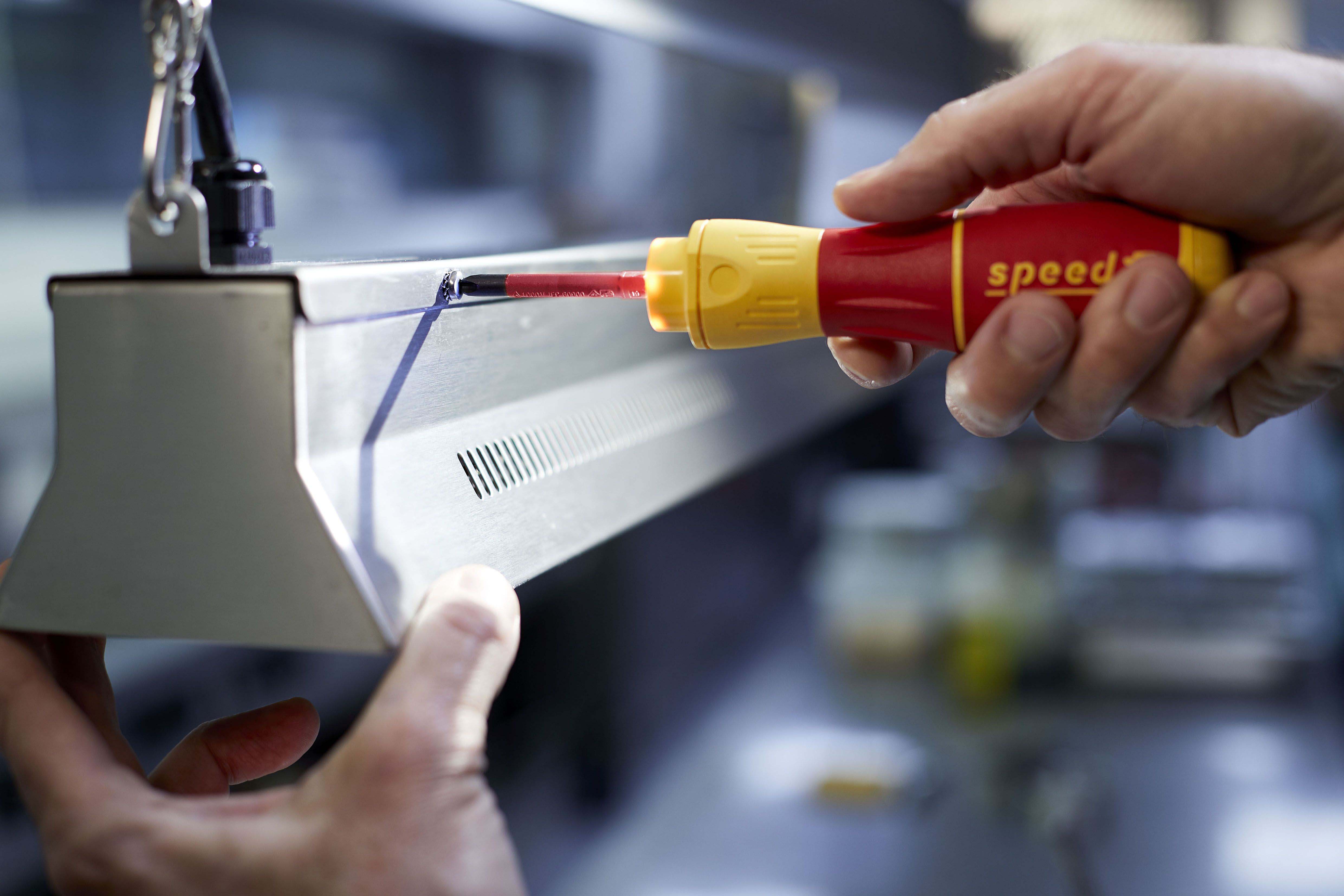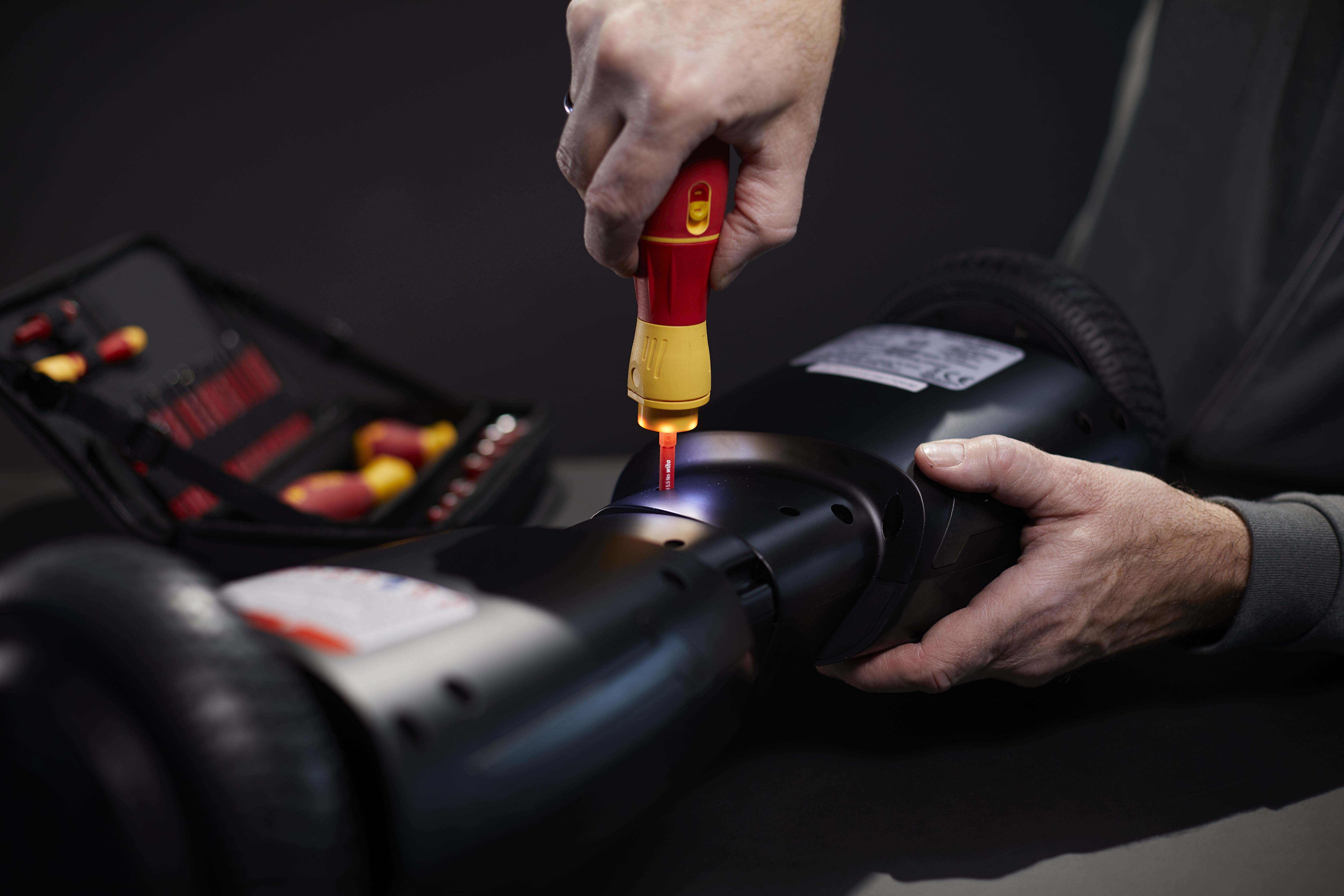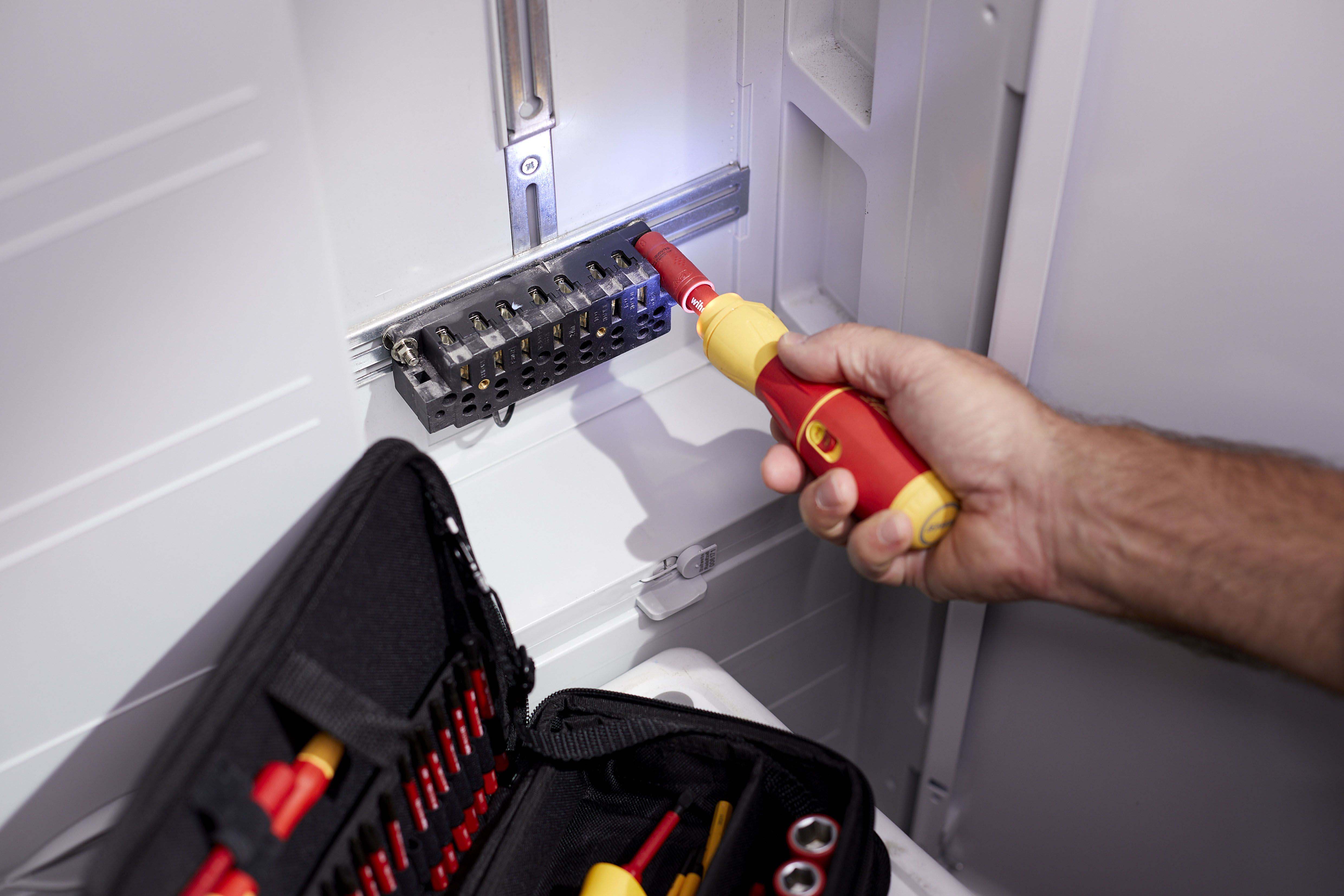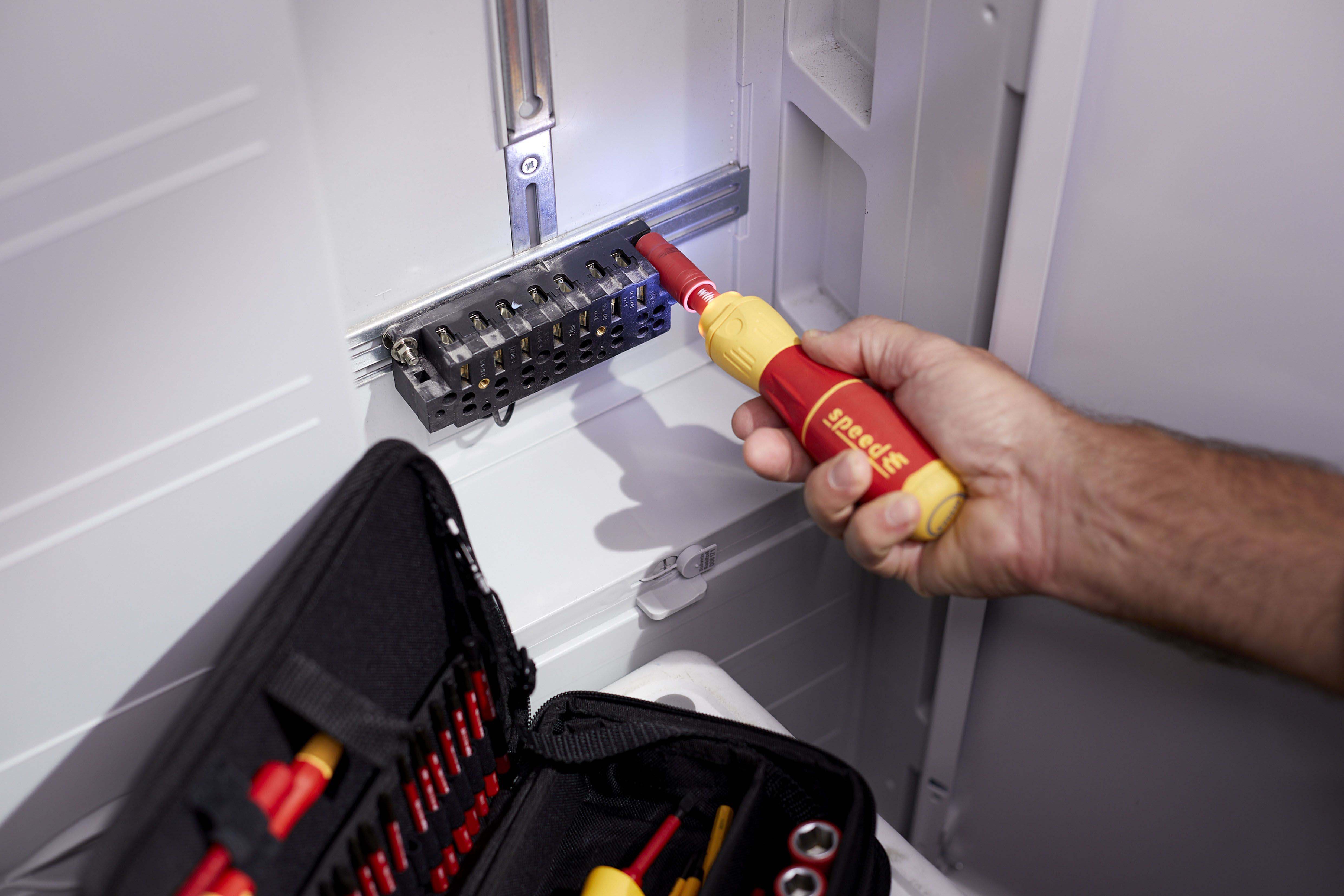 Steigert Ihre Geschwindigkeit: 3 x schnelleres Arbeiten dank elektrischem Antrieb.Schützt Ihr Material: Elektrisches Verschrauben mit Schutzfunktion zur Vermeidung von Materialbeschädigungen.Bietet Ihnen vollen Schutz: slimBits bei 10.000 V AC getestet und zugelassen für 1.000 V AC.Steigert Ihre Effizienz: 100% kompatibel mit der Wiha Electric Vario Family.Erleichtert die Handhabung: Einzigartiger Ringschalter ermöglicht die Bedienung in allen Arbeitspositionen.Vereinfacht Ihre Arbeit: Maximale Ausleuchtung des Arbeitsfeldes dank Ring-LED-Leuchte.Schont Ihre Gesundheit: Für hand- und muskelschonendes Arbeiten. Von deutschen Ärzten und Therapeuten des AGR empfohlen!Erfüllt Ihre Ansprüche: Qualität und Robustheit made in Germany.Anwendung: Ideales Werkzeug für alle Schraubarbeiten, z.B. Steckdosenmontage, Arbeiten im Schaltschrank, Industriewartung und -montage, Wartung und Reparatur von Motorgeräten, Haushaltsgeräte und weiße Ware, Fenster- und Türenmontage, Heizung-, Klima- und Sanitärinstallationen und Reparatur von Fahrrad, Motorrad und Rasenmäher. Auch im Haushalt für Möbelaufbauten, Reparaturen und sonstige Schraubaufgaben im Hobbybereich perfekt geeignet.3x schneller als von HandMaterialschutzfunktion dank Auto-StopBedienbar in allen Positionen dank RingschalterSchattenfreie BeleuchtungVon deutschen Ärzten und Therapeuten des AGR empfohlenslimBits ermöglichen Zugang zu tiefliegenden Schrauben dank eingelassener IsolierungEtliche Verschraubungen am Tag, hunderte Verschraubungen in der Woche. Als Handwerker investiert man viel Zeit und Energie in wiederkehrende Schraubarbeiten. Die daraus resultierenden Schmerzen in den Handgelenken können dem Körper nicht verübelt werden. Dank des elektrischen Antriebs des E-Schraubendrehers speedE® II werden die Gelenke und Sehnen gerade im Dauereinsatz geschont. Zudem reduziert sich der Zeitaufwand um das 3-fache. Als weiteres Highlight bietet der speedE® II die integrierte Materialschutzfunktion. Bei sensiblen Verschraubungen, wie beispielsweise bei Kunststoffabdeckungen von Steckdosen, darf nicht zu stark angezogen werden, da sonst das Material schaden nehmen kann. Hier schaltet der speedE® II automatisch bei 0,4 Nm ab und überlässt dem Anwender die volle Kontrolle, um den letzten Anzug gefühlvoll von Hand zu erledigen. Werden Schraubaufgaben angegangen bei denen mehr Kraft notwendig ist, bietet der speedE® der zweiten Generation die Möglichkeit per Schiebeschalter die elektrische Kraft auf 1,0 Nm zu erhöhen. Wird einmal mehr Kraft benötigt, kann mit dem speedE® II dennoch manuell bis zu 12 Nm aufgebracht werden, ohne dass er dadurch beschädigt wird. Während der Verschraubung spendet die integrierte LED dauerhaft Licht für eine optimale Sicht auf die Schraube. So kann in schlecht beleuchteten Arbeitsumgebungen durch Antippen des Ringschalters die leuchtstarke LED als Taschenlampe eingesetzt werden. Eine noch bessere Bedienfreundlichkeit garantiert der vergrößerte Ringschalter, sowie der reibungslose Rundlauf. Dank der Kombination aus Arbeitserleichterung sowie der ergonomischen SoftFinish® Griffform, wird der E-Schraubendreher speedE® II von deutschen Ärzten und Therapeuten des AGR empfohlen. Das Set beinhaltet zwei rote slimBits, ein USB Akku-Ladegerät sowie zwei Standard-Akkus des Typs 18500, wodurch durchgängiges Arbeiten ermöglicht wird.Inhalt:1x E-Schraubendreher Griff speedE® II1x Bit slimBit electric Schlitz 3,5 mm x 75 mm (41159)1x Ladegerät für Akku Typ 18500 Li-Ion mit USB1x Akku-Set 18500 Li-Ion 2 Stk. in Box (41914)1x L-Boxx mini imBits, Batterien und USB-Ladegerät in L-Boxx Mini (44318)