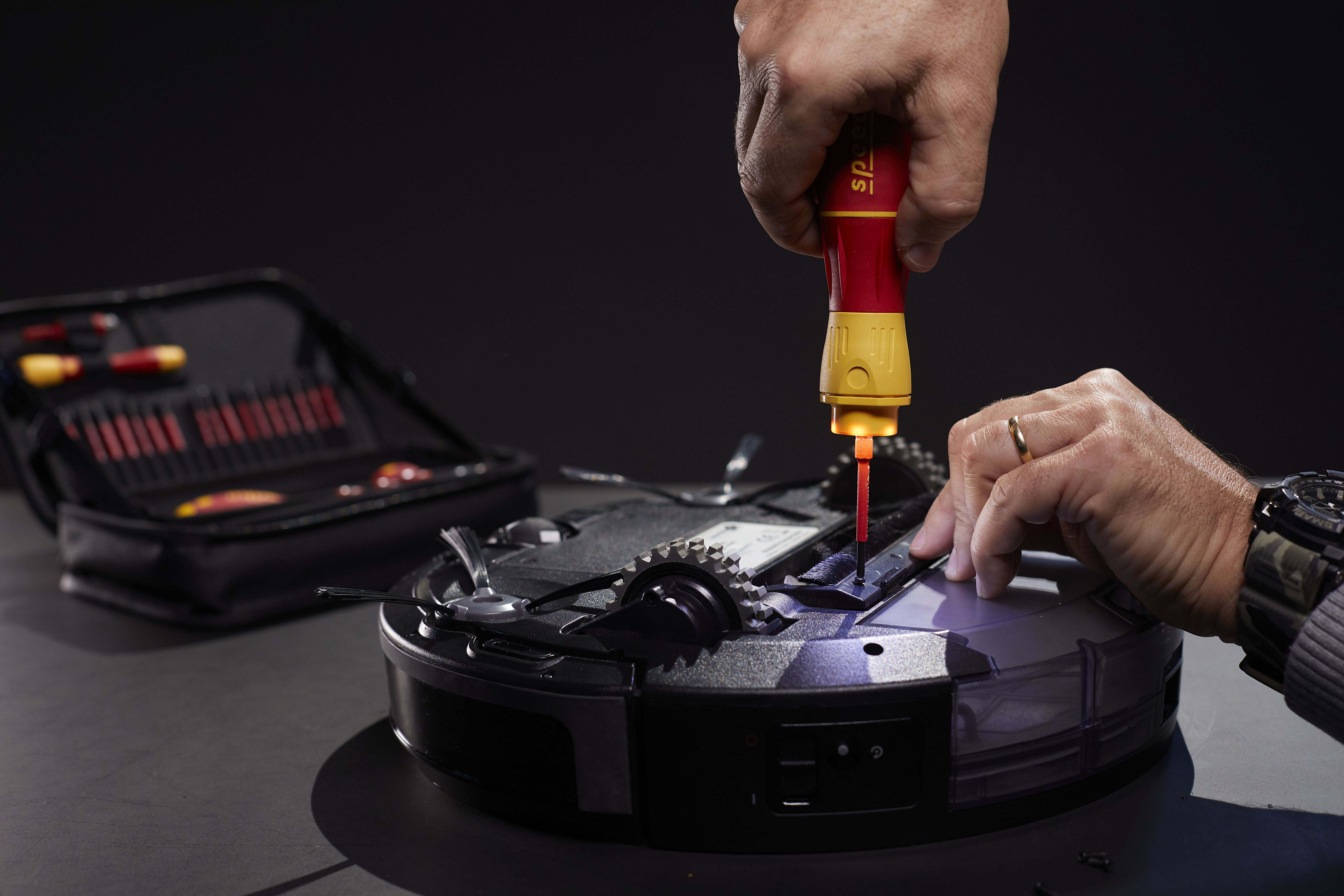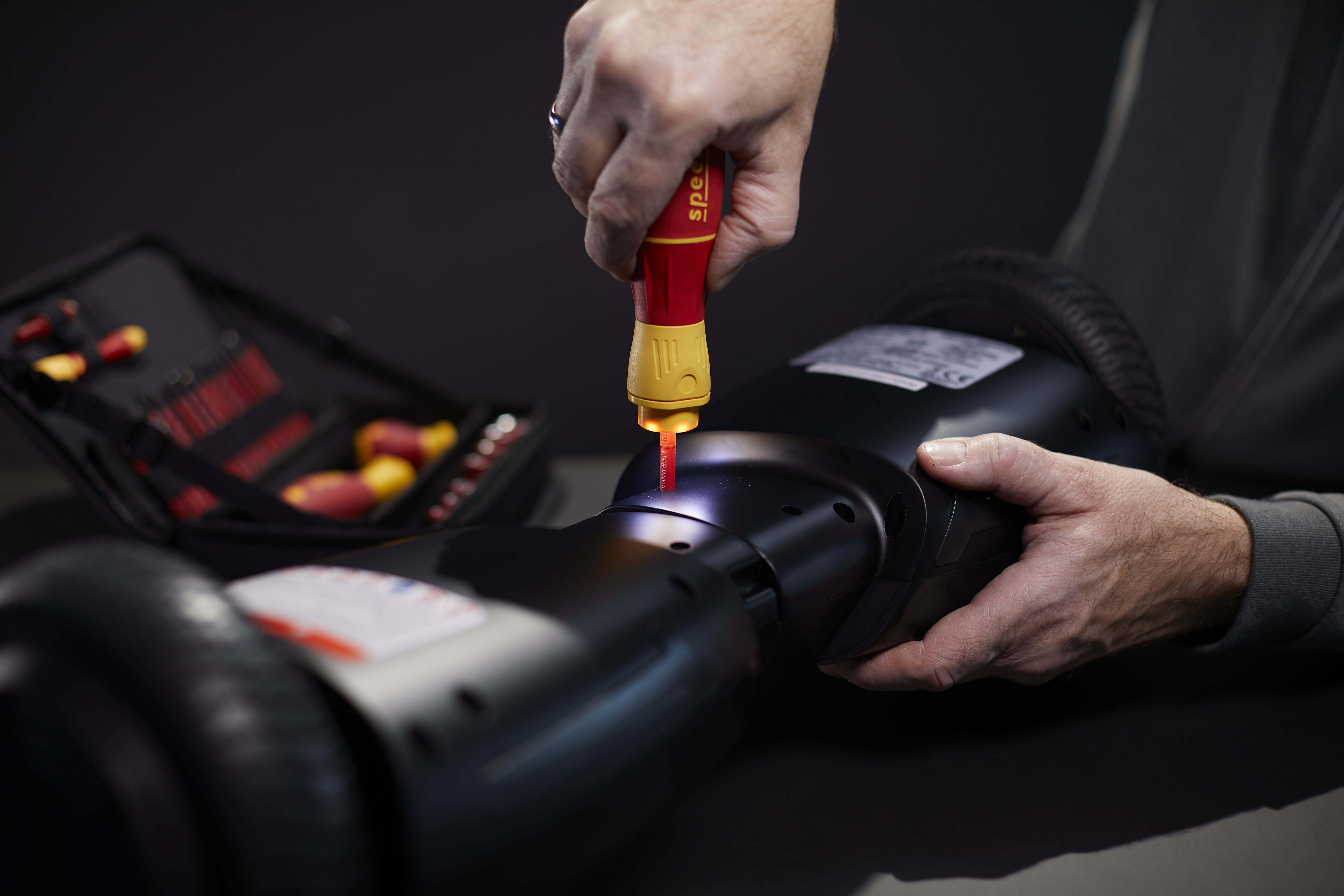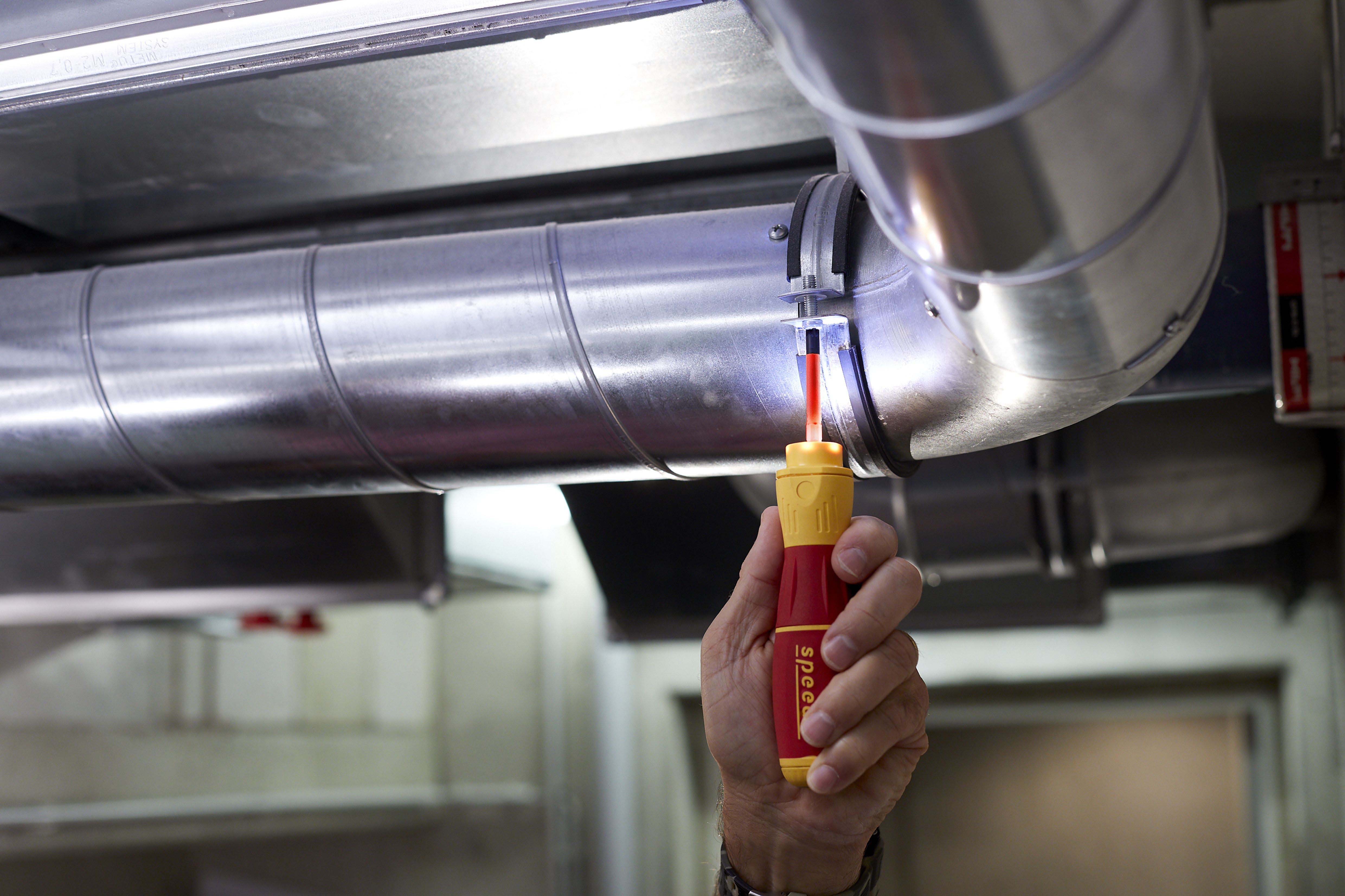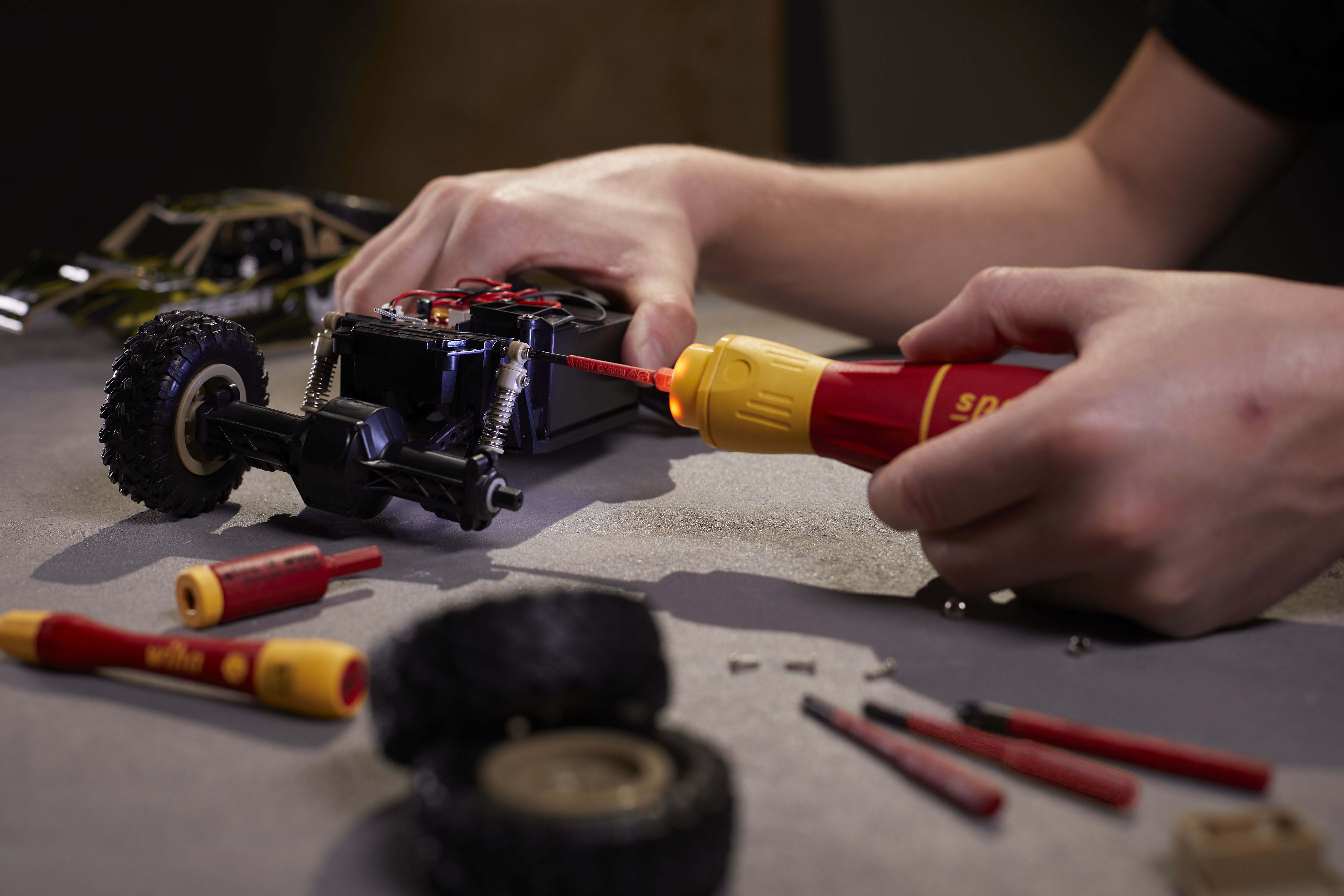 Steigert Ihre Geschwindigkeit: 3 x schnelleres Arbeiten dank elektrischem Antrieb.Schützt Ihr Material: Elektrisches Verschrauben mit Schutzfunktion zur Vermeidung von Materialbeschädigungen.Bietet Ihnen vollen Schutz: slimBits bei 10.000 V AC getestet und zugelassen für 1.000 V AC.Steigert Ihre Effizienz: 100% kompatibel mit der Wiha Electric Vario Family.Erleichtert die Handhabung: Einzigartiger Ringschalter ermöglicht die Bedienung in allen Arbeitspositionen.Vereinfacht Ihre Arbeit: Maximale Ausleuchtung des Arbeitsfeldes dank Ring-LED-Leuchte.Schont Ihre Gesundheit: Für hand- und muskelschonendes Arbeiten. Von deutschen Ärzten und Therapeuten des AGR empfohlen!Erfüllt Ihre Ansprüche: Qualität und Robustheit made in Germany.Anwendung: Ideales Werkzeug für alle Schraubarbeiten, z.B. Steckdosenmontage, Arbeiten im Schaltschrank, Industriewartung und -montage, Wartung und Reparatur von Motorgeräten, Haushaltsgeräte und weiße Ware, Fenster- und Türenmontage, Heizung-, Klima- und Sanitärinstallationen und Reparatur von Fahrrad, Motorrad und Rasenmäher. Auch im Haushalt für Möbelaufbauten, Reparaturen und sonstige Schraubaufgaben im Hobbybereich perfekt geeignet.3x schneller als von HandMaterialschutzfunktion dank Auto-StopBedienbar in allen Positionen dank RingschalterSchattenfreie BeleuchtungVon deutschen Ärzten und Therapeuten des AGR empfohlenslimBits ermöglichen Zugang zu tiefliegenden Schrauben dank eingelassener IsolierungEtliche Verschraubungen am Tag, hunderte Verschraubungen in der Woche. Als Handwerker investiert man viel Zeit und Energie in wiederkehrende Schraubarbeiten. Die daraus resultierenden Schmerzen in den Handgelenken können dem Körper nicht verübelt werden. Dank des elektrischen Antriebs des E-Schraubendrehers speedE® II werden die Gelenke und Sehnen gerade im Dauereinsatz geschont. Zudem reduziert sich der Zeitaufwand um das 3-fache. Als weiteres Highlight bietet der speedE® II die integrierte Materialschutzfunktion. Bei sensiblen Verschraubungen, wie beispielsweise bei Kunststoffabdeckungen von Steckdosen, darf nicht zu stark angezogen werden, da sonst das Material schaden nehmen kann. Hier schaltet der speedE® II automatisch bei 0,4 Nm ab und überlässt dem Anwender die volle Kontrolle, um den letzten Anzug gefühlvoll von Hand zu erledigen. Werden Schraubaufgaben angegangen bei denen mehr Kraft notwendig ist, bietet der speedE® der zweiten Generation die Möglichkeit per Schiebeschalter die elektrische Kraft auf 1,0 Nm zu erhöhen. Wird einmal mehr Kraft benötigt, kann mit dem speedE® II dennoch manuell bis zu 12 Nm aufgebracht werden, ohne dass er dadurch beschädigt wird. Während der Verschraubung spendet die integrierte LED dauerhaft Licht für eine optimale Sicht auf die Schraube. So kann in schlecht beleuchteten Arbeitsumgebungen durch Antippen des Ringschalters die leuchtstarke LED als Taschenlampe eingesetzt werden. Eine noch bessere Bedienfreundlichkeit garantiert der vergrößerte Ringschalter, sowie der reibungslose Rundlauf. Dank der Kombination aus Arbeitserleichterung sowie der ergonomischen SoftFinish® Griffform, wird der E-Schraubendreher speedE® II von deutschen Ärzten und Therapeuten des AGR empfohlen. Das Set beinhaltet zwei rote slimBits, ein USB Akku-Ladegerät sowie zwei Standard-Akkus des Typs 18500, wodurch durchgängiges Arbeiten ermöglicht wird.Inhalt:1x E-Schraubendreher Griff speedE® II1x Bit slimBit electric Schlitz 3,5 mm x 75 mm (41159)1x Ladegerät für Akku Typ 18500 Li-Ion mit USB1x Akku-Set 18500 Li-Ion 2 Stk. in Box (41914)1x L-Boxx mini imBits, Batterien und USB-Ladegerät in L-Boxx Mini (44318)