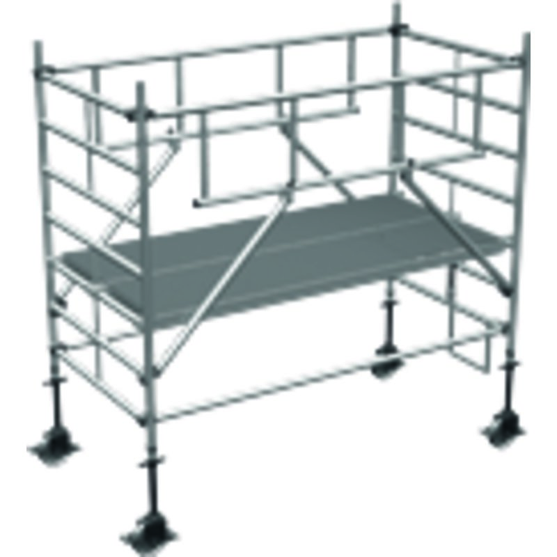 Maximale Arbeitsfläche, sicherer und schnellerer Aufbau durch vorlaufendes Geländer, geringen Plattformabstand und weniger Einzelteile.