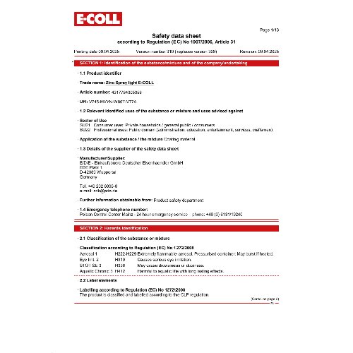 Produktinformationen "Zink-Spray hell 400ml silbergrau E-COLL"