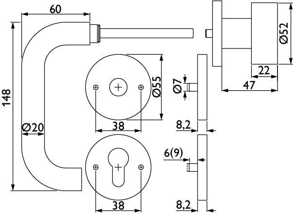 Höhe Drückerrosette (außen): | 8.20 mm |