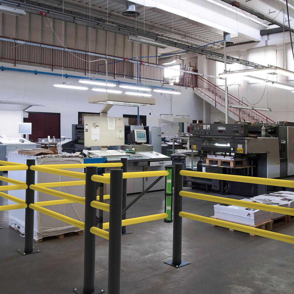 Die Schwingtür ist kombinierbar mit dem Sicherheitsgeländer „Delta“.