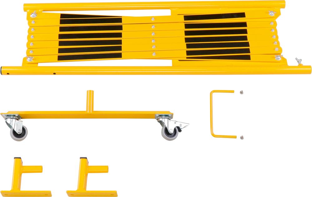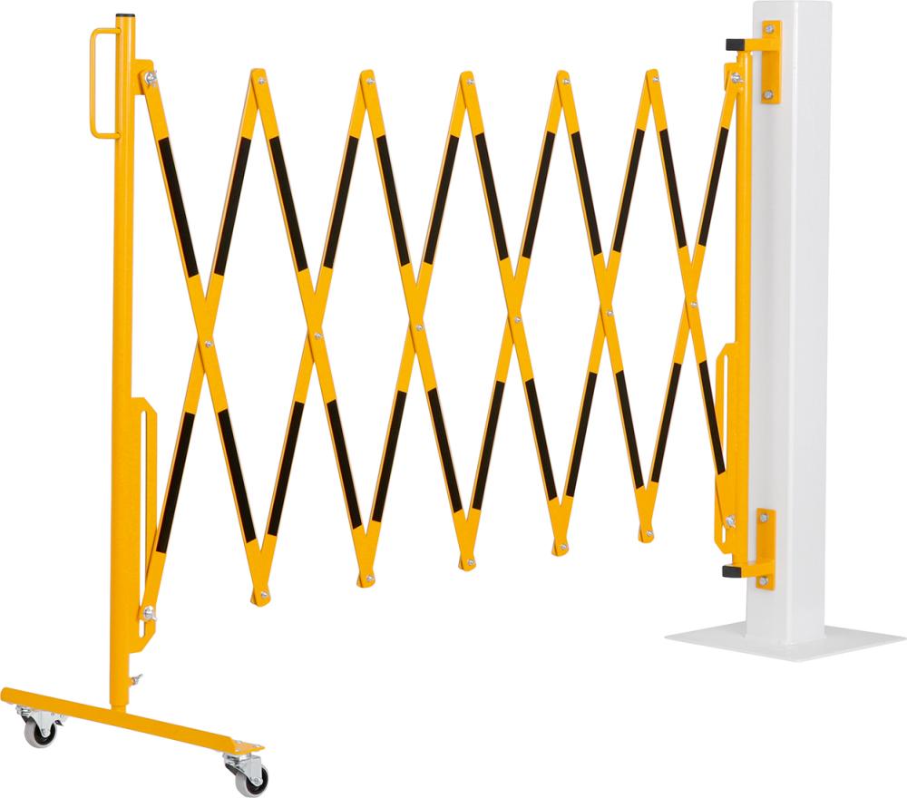 Eigenschaften "dancop Scherengitter H 1050mm, L bis 3600mm gelb/schwarz Wandbefestigung/Rollenfuß"
