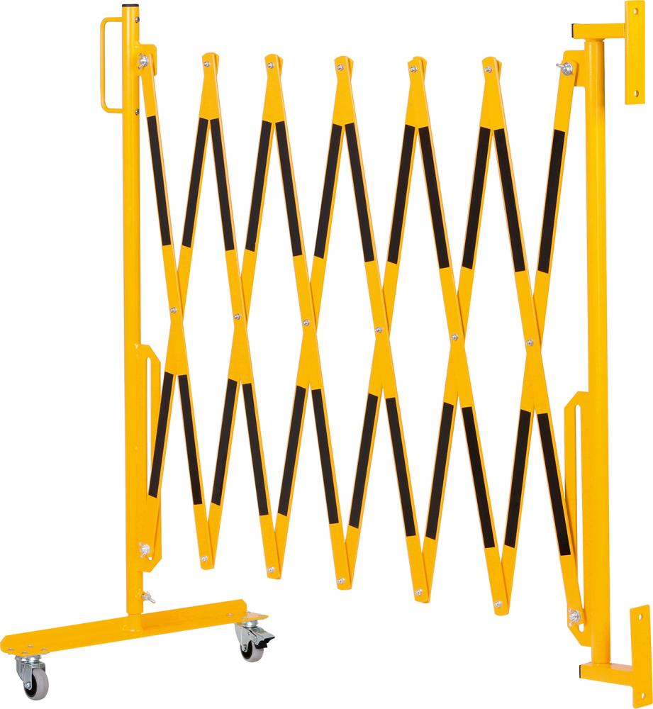 Eigenschaften "dancop Scherengitter H 1050mm, L bis 4000mm gelb/schwarz Wandbefestigung/Rollenfuß"