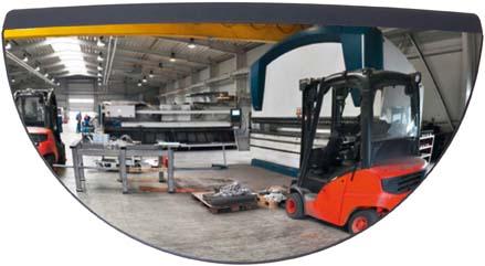 Dieser Weitwinkelspiegel sorgt für ein größeres Sichtfeld und einen guten Überblick über die Verkehrswege in Produktionsstätten.
