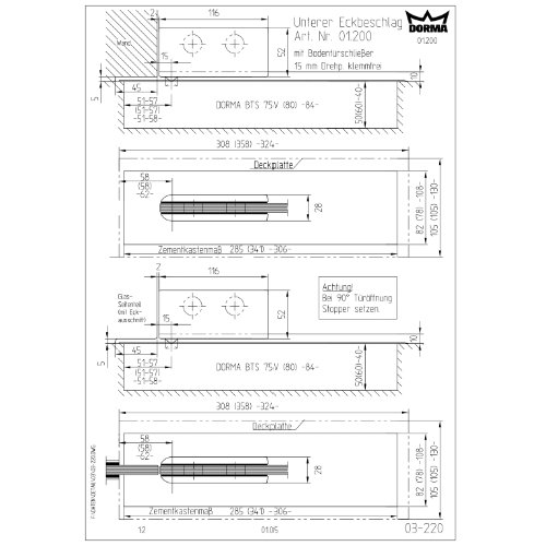 dormakaba Bodentürschließer BTS 80,EN 3,m.Stecka.,m.Zementk.