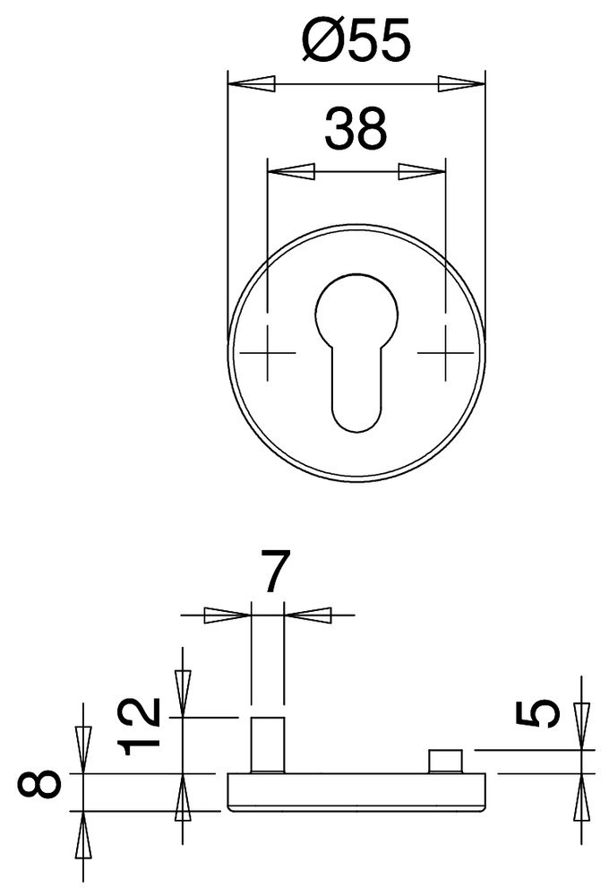 edi Schlüsselrosette 1086 innen,rd.,PZ,8mm,TS 35-45,F1