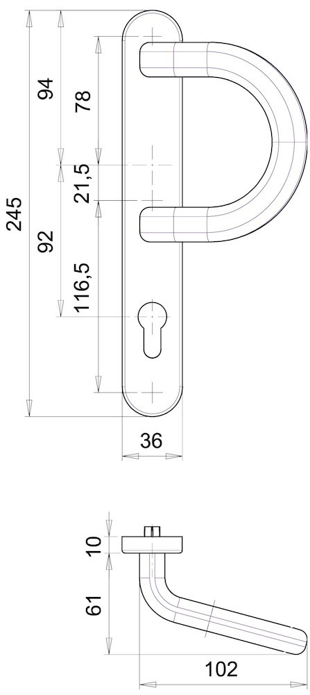 • Profilzylinder gelocht, Loch Entfernung 92 mm