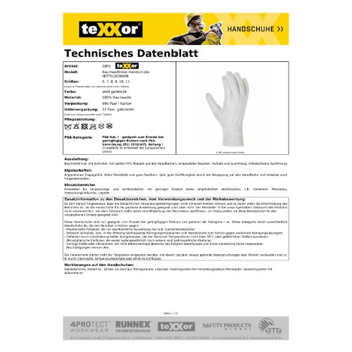 Eigenschaften "teXXor® Baumwolltrikot-Handschuhe MITTELSCHWER 8, weiß gebleicht"