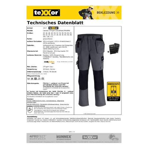 Eigenschaften "teXXor® Canvas (270 g/m²) Bundhose PANAMA 29, grau/schwarz"