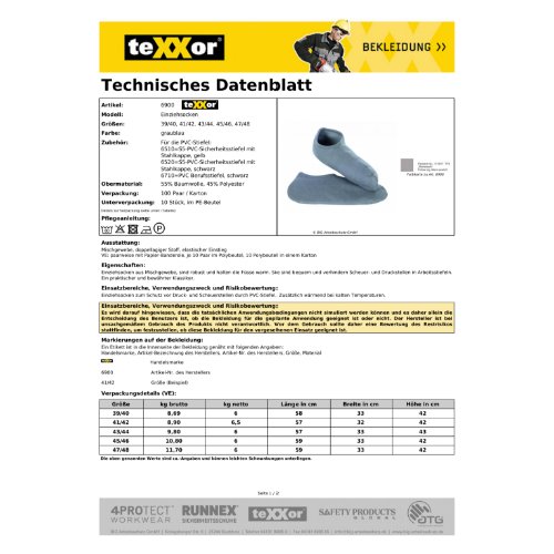 Eigenschaften "teXXor® Einziehsocken 47-48, graublau"