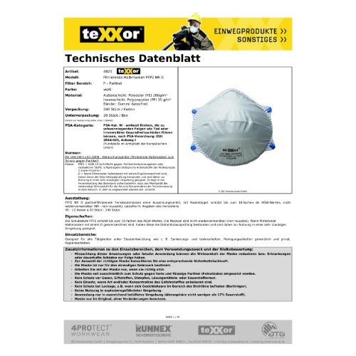 | Variante: | teXXor® Feinstaubmaske FFP2 NR D mit Nasenbügel, weiß |