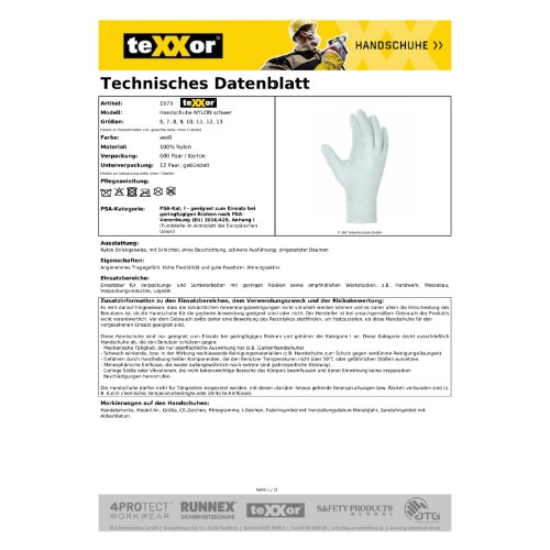Eigenschaften "teXXor® Handschuhe NYLON schwer 9, weiß"