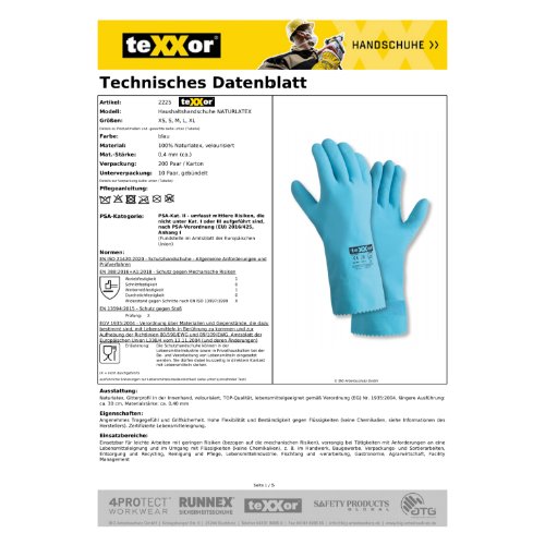 Eigenschaften "teXXor® Haushaltshandschuhe NATURLATEX 8, blau"