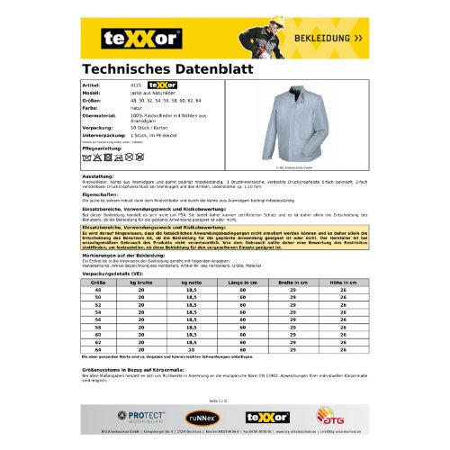 Eigenschaften "teXXor® Leder-Jacke 56, natur"