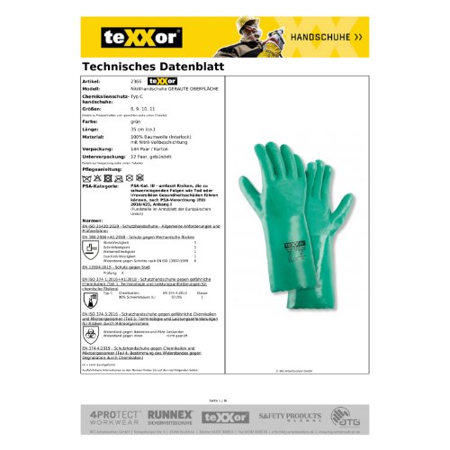 Eigenschaften "teXXor® Nitril-Handschuhe GERAUTE OBERFLÄCHE 10, grün"
