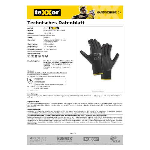Eigenschaften "teXXor® Nitril-Handschuhe POLYESTER schwarz 9, schwarz"