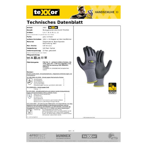 | Normen: | EN ISO 21420:2020, EN 388:2016+A1:2018, EN 407:2020, VO (EG) 1935/2004 |