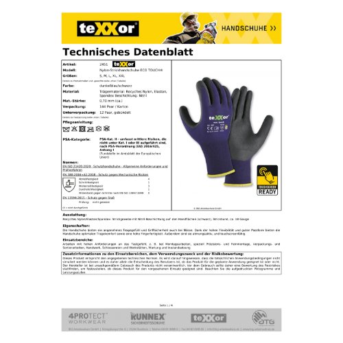 Eigenschaften "teXXor® Nylon-Strickhandschuhe ECO TOUCH® 7, dunkelblau/schwarz"