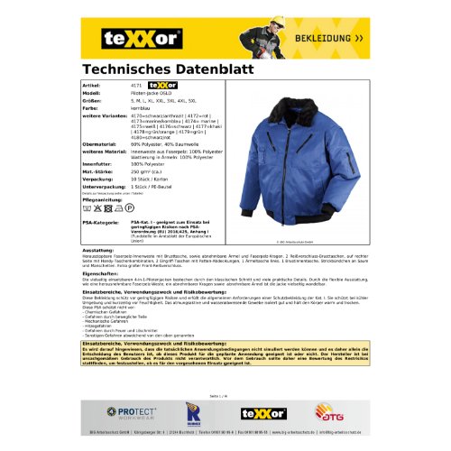 | Variante: | teXXor® Piloten-Jacke OSLO 3XL, kornblau |