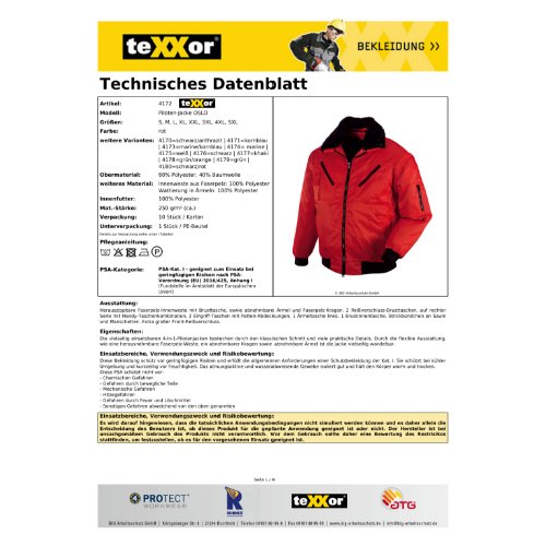 | Variante: | teXXor® Piloten-Jacke OSLO 3XL, rot |