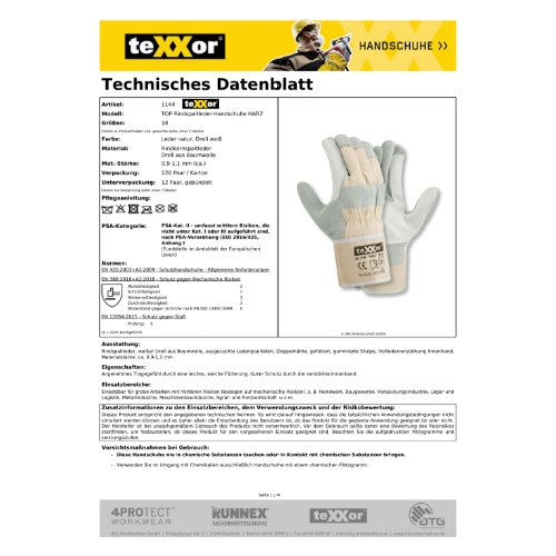 Eigenschaften "teXXor® Rindspaltleder-Handschuhe HARZ 10"