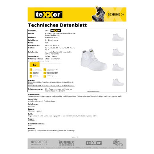 Eigenschaften "teXXor® S2-Sicherheitsschnürstiefel MONTEPELLIER 44, weiß"