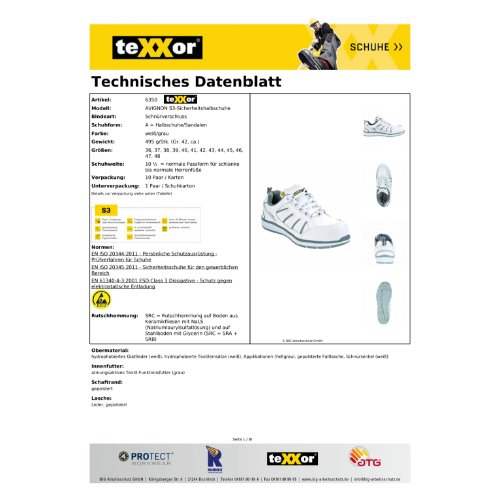 Eigenschaften "teXXor® S3-ESD-Sicherheitshalbschuhe AVIGNON 39, weiß/grau"