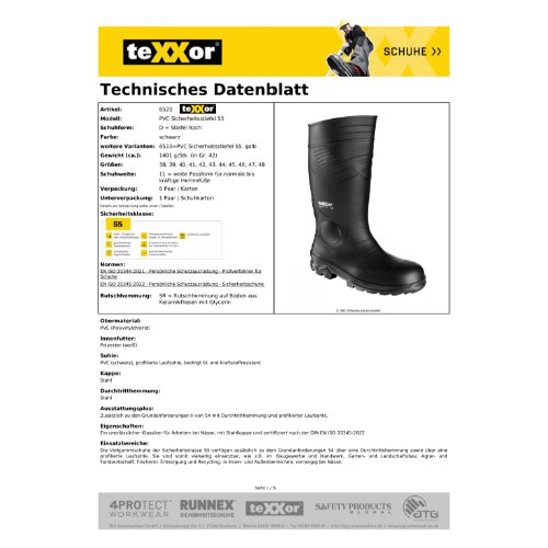 Eigenschaften "teXXor® S5-PVC-Sicherheitsstiefel 44, schwarz"