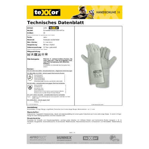 Eigenschaften "teXXor® Schweißerhandschuhe KATLA 10"