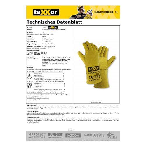 Eigenschaften "teXXor® Schweißerhandschuhe KRAKATAU 10"