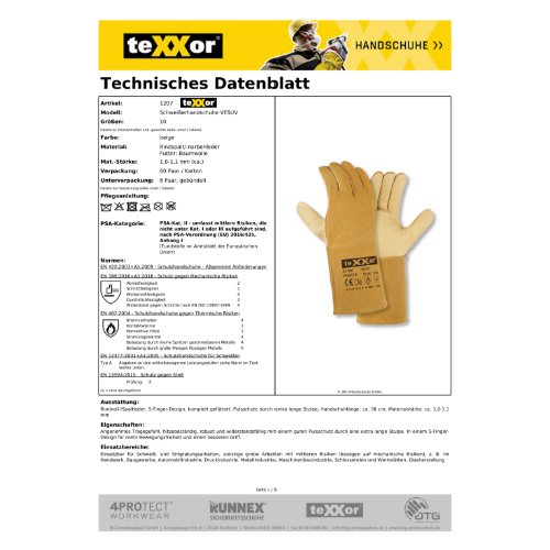 Eigenschaften "teXXor® Schweißerhandschuhe VESUV 10"