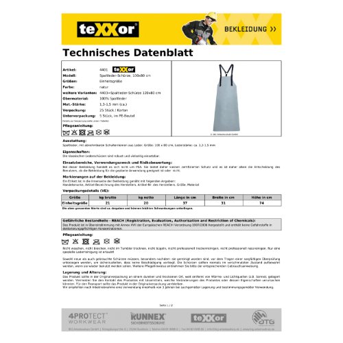 Eigenschaften "teXXor® Spaltleder-Schürze"