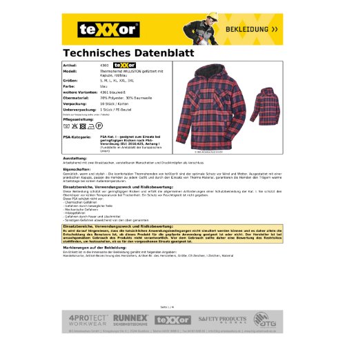 Eigenschaften "teXXor® Thermohemd WILLISTON XXL, rot/blau"