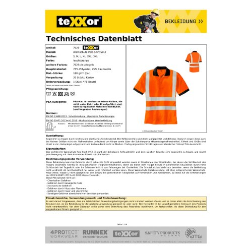 Eigenschaften "teXXor® Warnschutz Polo-Shirt SYLT S, leuchtorange"