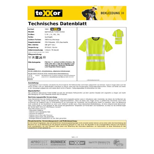 Eigenschaften "teXXor® Warnschutz T-Shirt HOOGE XL, leuchtgelb"
