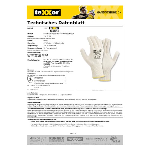 Eigenschaften "teXXor® topline Feinstrick-Handschuhe BAUMWOLLE/NYLON 7, beige"